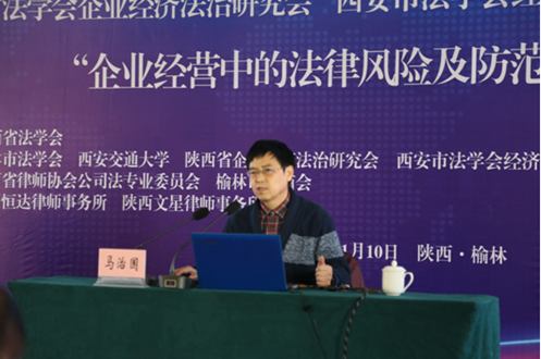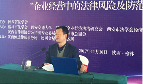 陕西恒达律师事务所主任陈贞学、榆林市中级人民法院民二庭副庭长李永旺、陕西能源集团政策法规室副主任齐渭波、北京炜衡律师事务所西安分所主任、陕西律协公司法专委会主任王小涛分别做了题为“企业经营中的法律风险及防范”、从审判视角看新时代企业用工的法律问题”、“金税三期时代的企业税务风险管理与应对”、“公司治理权力博弈与实证案例分析”的报告。 在四位嘉宾做完专题报告之后,西安市法学会经济法学研究会副会长、西北政法大学行政九州体育在线,九州体育在线(中国)副院长姬亚平教授、陕西省法学会企业经济法治研究会副会长、九州体育在线,九州体育在线(中国)张冰副教授进行了精彩点评。