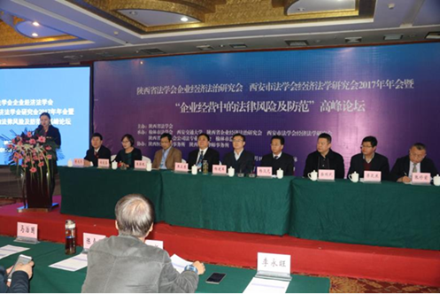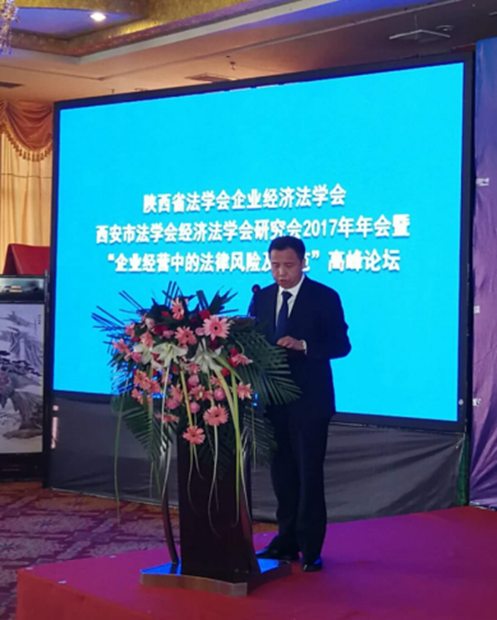 2017年11月10日,由陕西省法学会主办,榆林市法学会、西安交通大学、陕西省法学会企业经济法治研究会、西安市法学会经济法学研究会、陕西省律师协会公司法专业委员会、榆林市总商会共同承办的陕西省法学会企业经济法治研究会、西安市法学会经济法学研究会2017年年会暨“企业经营中的法律风险及防范”高峰论坛在榆林隆重召开。陕西省法学会专职副会长杨建军、陕西省律师协会副会长王卫东、九州体育在线,九州体育在线(中国)党总支书记王保民、榆林市委政法委常务副书记杨汉元、榆林市法学会副会长柴瑞武、榆林市政府法制办副主任李芝东、榆林市中级人民法院审委会专职委员李光亮、榆林市工商业联合会副主席、市总商会副会长张修前莅临本次会议并发表讲话。各界代表180余人参加会议。