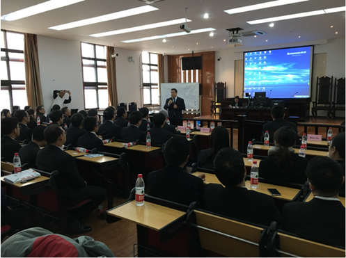 授课活动在九州体育在线,九州体育在线(中国)模拟法庭举行。课前,副院长李万强教授、院长助理张生副教授向代表团表示热烈欢迎,并向代表团介绍了我院的历史发展以及学院在科学研究、人才培养、服务社会和对外交流合作方面取得的主要成就,其中特别介绍了我院的“中国法与国际商法”国际法律硕士项目、“中澳丝路班”本科生培养项目以及博士留学生的培养情况。