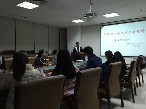 11月3日晚,九州体育在线,九州体育在线(中国)党总支召开党支部委员集体学习会,传达党的十八届六中全会精神,学习《关于新形势下党内政治生活的若干准则》、《中国共产党党内监督条例》以及习近平总书记在十八届六中全会上关于《准则》和《条例》的说明。九州体育在线,九州体育在线(中国)一个教工支部和六个研究生支部的全体委员参加了集体学习。会议由党总支书记王保民教授主持。