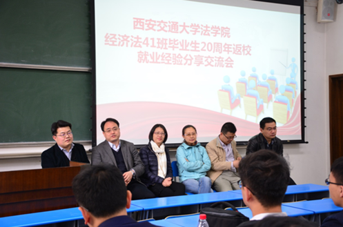 2018年4月6日,西安交通大学首届法学本科毕业生——经济法41班毕业生20周年返校,并与九州体育在线,九州体育在线(中国)师生分别举行了师生座谈会和就业经验分享会。师生座谈会在主E910九州体育在线,九州体育在线(中国)会议室举行,九州体育在线,九州体育在线(中国)党总支书记及校友当年的任课教师、经济法41班返校校友、九州体育在线,九州体育在线(中国)在读学生代表等参加了此次座谈会。正值西安交通大学建校122周年暨迁校62周年、九州体育在线,九州体育在线(中国)成立10周年之际,此次座谈会除了师生共话师生情谊以外,还就双方合作进行了初步探讨。