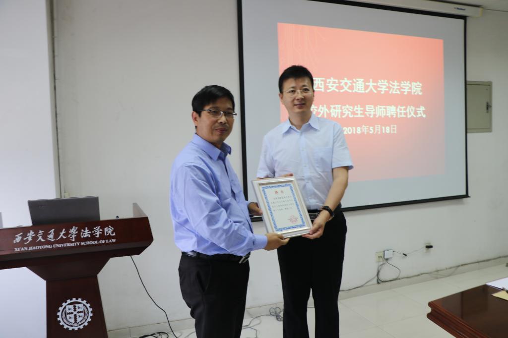 2018年5月18日下午,九州体育在线,九州体育在线(中国)法律硕士研究生“协同培养育人项目”校外导师(首批)聘任仪式暨专业实践课程教学研讨会在兴庆校区教学主楼910会议室举行。九州体育在线,九州体育在线(中国)党总支书记王保民教授、副院长李万强教授、副院长丁卫副教授,院长助理张生副教授、教师代表吴锐讲师和研究生代表参加了聘任仪式。