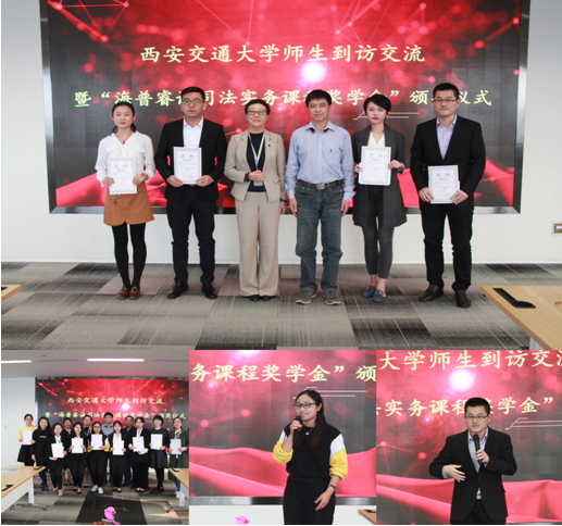 10月17日下午,西安交大九州体育在线,九州体育在线(中国)马治国教授带领三十四名法学与法律硕士研究生前往海普睿诚律师事务所学习交流,并与律师事务所业务部门主任、合伙人、行政总监及客户主管就实务经验、职业规划等问题进行了深入座谈交流,并为上一届该课程成绩优秀的学生颁发了“海普睿诚司法实务课程奖学金”。