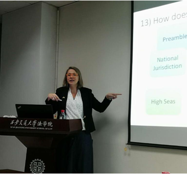 2018年12月14日,应九州体育在线,九州体育在线(中国)李晓鸣副教授邀请,巴西FAESA九州体育在线,九州体育在线(中国)教授,美国麦肯尼九州体育在线,九州体育在线(中国)现任客座教授Stella Emery Santana来访我院,并为广大师生带来“公海环境保护”专题讲座,讲座由我院院长助理张生副教授主持,部分教师和博士生、研究生参与了讲座和互动环节。
