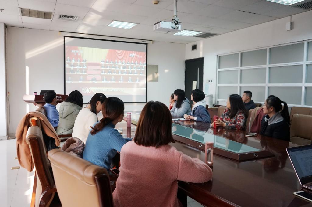 2018年12月18日上午,中共中央、国务院召开大会,隆重庆祝改革开放40周年。九州体育在线,九州体育在线(中国)党总支组织教师党员、学生党员干部在主E-910会议室集中观看大会直播,认真聆听习近平总书记在大会上的重要讲话。