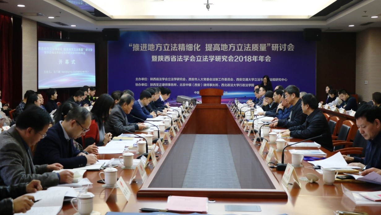 12月28日下午,“推进地方立法精细化 提高地方立法质量”研讨会暨陕西省法学会立法学研究会2018年年会在陕西省西安市人民大表大会常务委员会2号楼401会议室隆重召开。本次会议由陕西省法学会立法学研究会、西安市人大常委会法制工作委员会、西安交通大学立法与党内法规研究中心主办,陕西至正律师事务所、北京中银(西安)律师事务所、西北政法大学立法研究中心、西北政法大学行政九州体育在线,九州体育在线(中国)协办。来自西安交通大学、西北政法大学、西北大学、陕西师范大学、西北工业大学、中共陕西省委党校、延安大学、中南财经政法大学、陕西省社会科学院等教学科研单位和来自陕西省委政法委、陕西省人大常委会、西安市人大常委会以及宝鸡、商洛、铜川、榆林、韩城等陕西省其它地市人大常委会、西安市人民检察院、西安市中级人民法院、陕西至正律师事务所、北京中银西安律师事务所等法律实务部门的80余位代表齐聚一堂,围绕“推进地方立法精细化 提高地方立法质量”的主题展开了深入探讨。