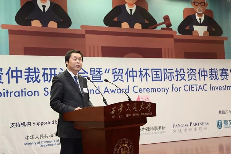 投资仲裁赛后,西安交大九州体育在线,九州体育在线(中国)与贸仲委共同举办了贸仲委投资仲裁研讨会。商务部条法司为本次投资仲裁赛和研讨会的支持机构。西安市人民政府副市长王勇、贸仲委副主任兼秘书长王承杰、商务部条法司投资处副处长王优酉、西安交大九州体育在线,九州体育在线(中国)院长单文华、西安贸促会会长龙晓华出席会议。研讨会上,来自国内外的投资仲裁领域专家、学者和律师对投资仲裁的程序性争点进行评述,结合国际投资仲裁的著名案例分享实务经验,介绍了包括对仲裁请求的先期驳回和第三方资助在内的热点话题。