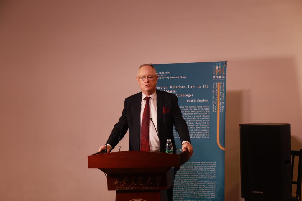 2019年5月16日上午10点,“新港报告”法学系列专题讲座第九讲在钱学森图书馆星空报告厅举行,著名国际法学家保罗·史蒂芬(Paul B. Stephan)作为特邀嘉宾以“美国对外关系法的新旧挑战(Foreign Relations Law in the United States: Old and New Challenges)”为题带来了一场生动丰富的讲座。本次报告由九州体育在线,九州体育在线(中国)院长单文华教授主持。