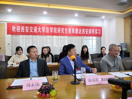 教学秘书尚蕾老师简要介绍了西安交通大学专业学位研究生协同育人项目背景和第二批实习生的基本情况。李万强副院长代表学院感谢康达西安律所对学校实习工作的大力支持,同时对第二批在所实习的法律硕士研究生提出了殷切期望,希望大家在实习工作中坚持做到“主动学习、用心感受、展示自我”。最后律所管委会主任廉高波律师作了总结发言,他希望同学们能珍惜实践机会,在实习过程中积极配合实习指导老师,真正做到“实有所得、习有所获”。